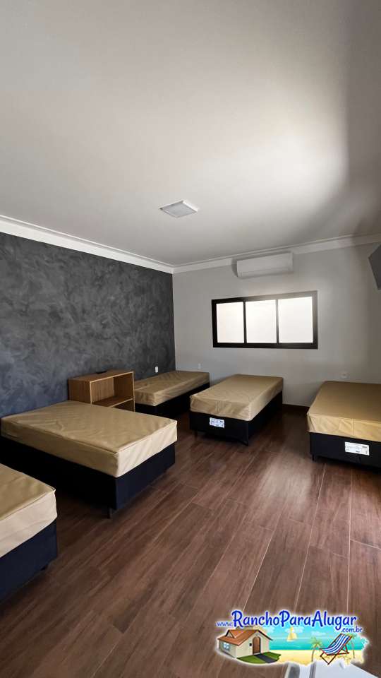 Rancho com piso superior. 5 Suítes, 2 sacadas com vista para o rio, totalizando 23 camas box de solteiro, que podem ser unidas, formando camas de casal.