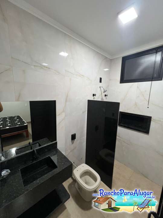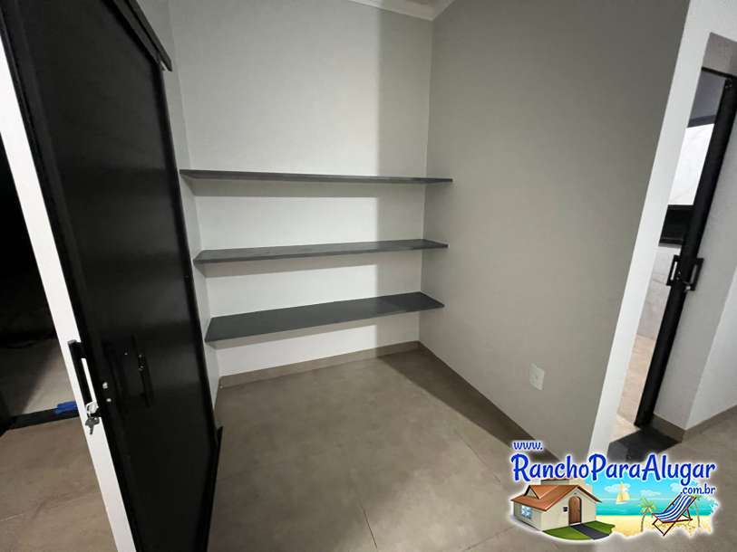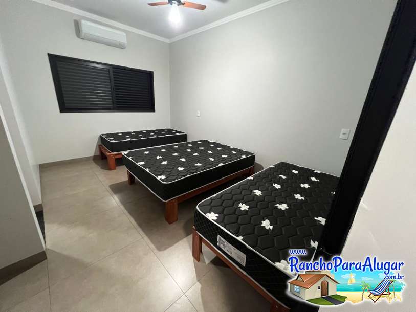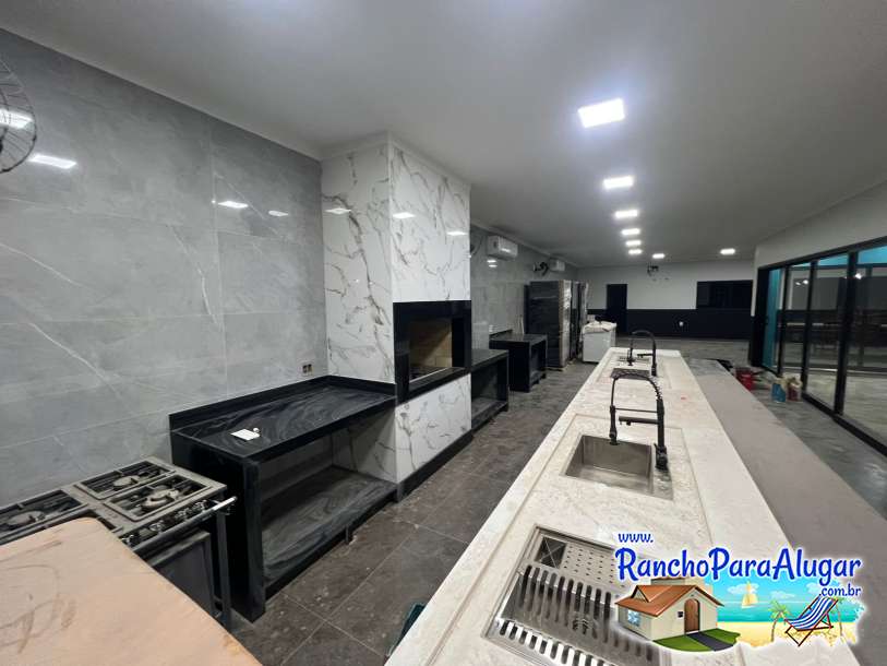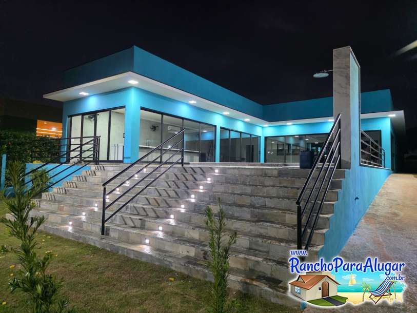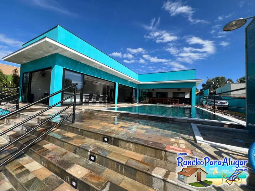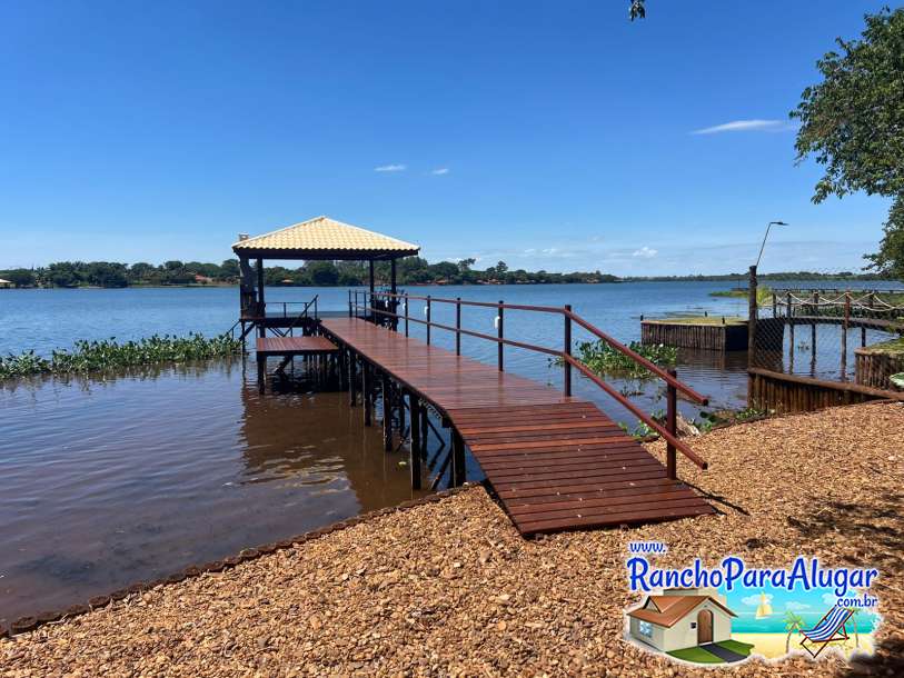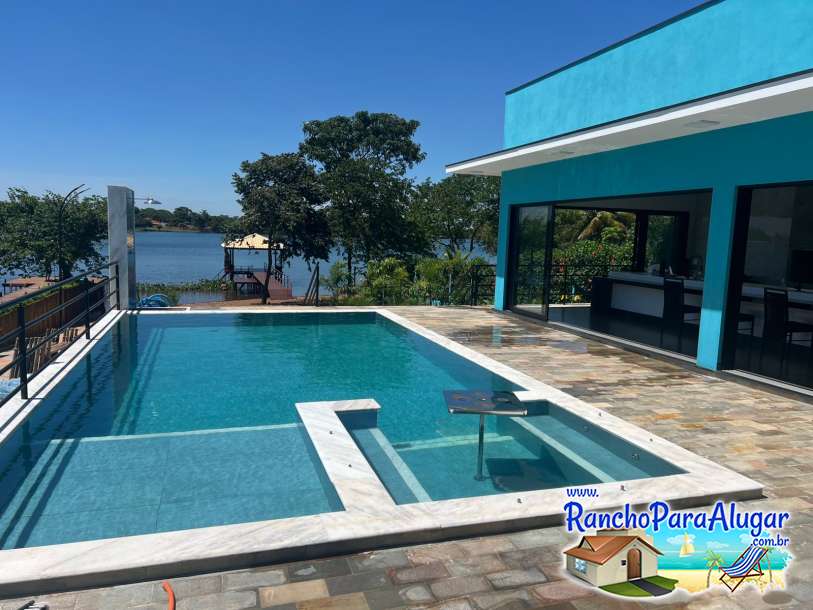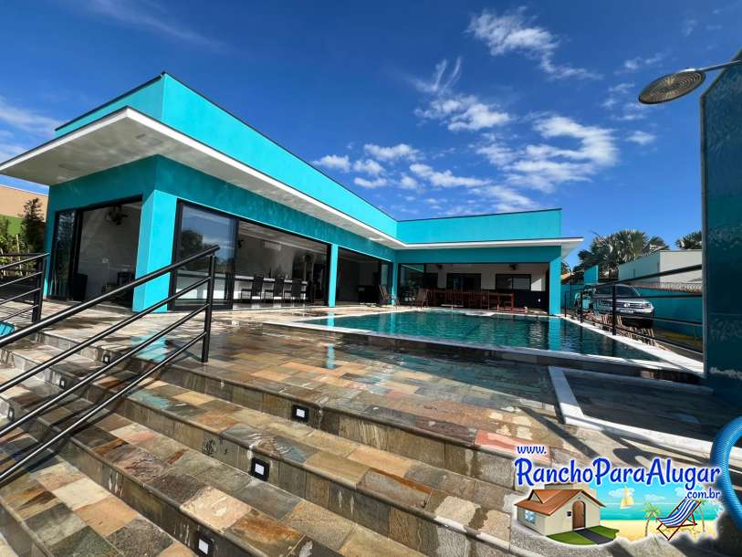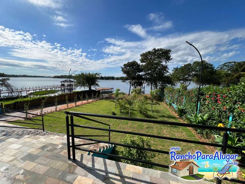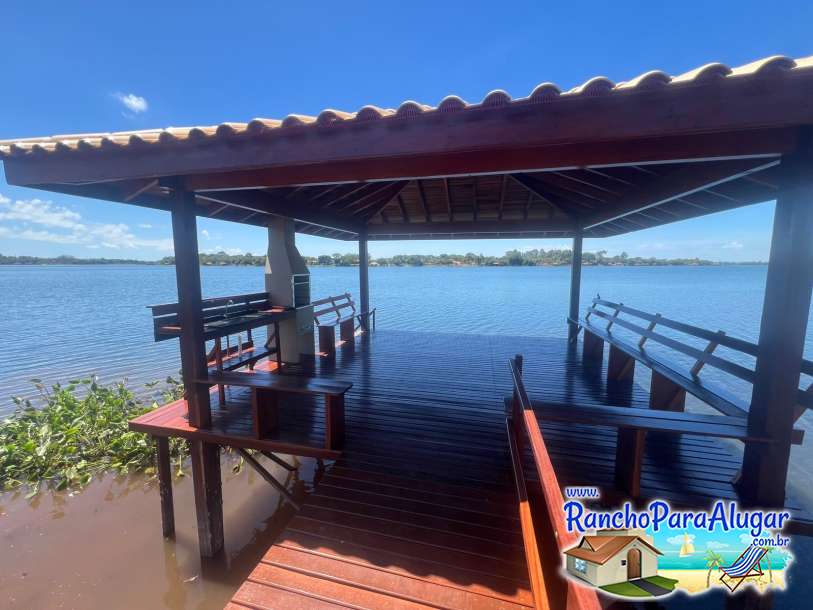 Rancho amplo com ótima localização, 12 suites, piscina, píer coberto, todo gramado, ampla área para churrasco, um grande estacionamento para 30 carros dentro do rancho.