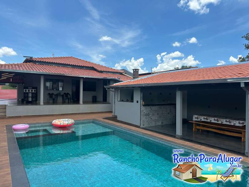 Rancho aconchegante, varanda com área para churrasco, 5 dormitórios, piscina, local agradável e aconchegante para você curtir seu fim de semana, férias e feriados.